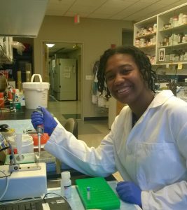 Dionna working in the University lab at Hofstra University.